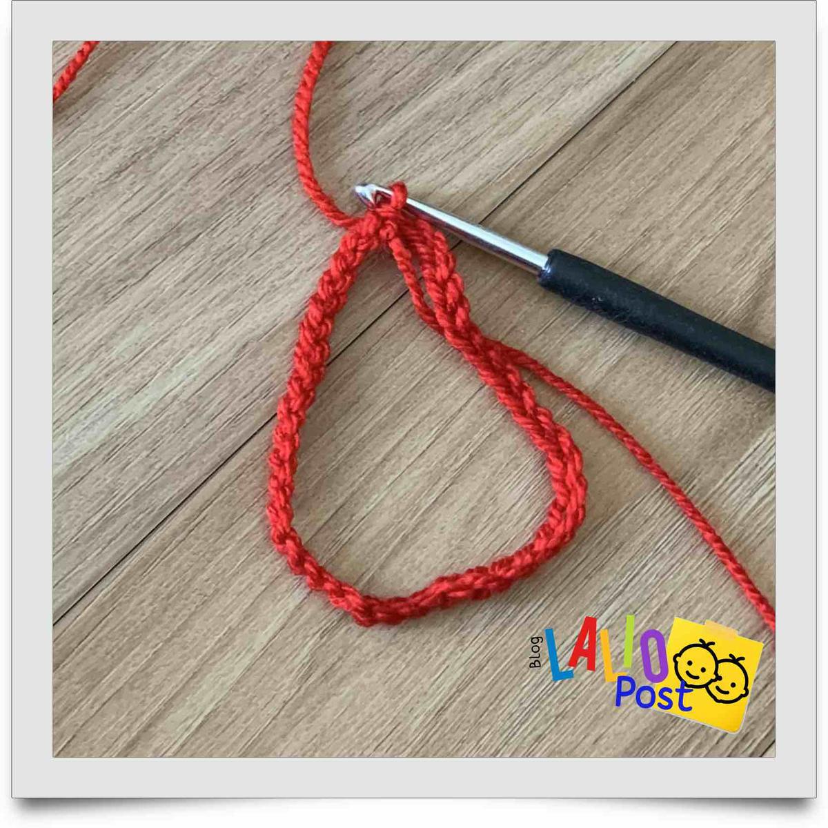 En primer lugar, vamos a iniciar el canesú tejiendo una cadena del tamaño de la cabeza de la persona a la que vayas a tejer el jersey o blusa.Contaremos el número de puntos que tenga esta cadena y procuraremos que nuestra cadena inicial sea un número par, es decir, si por ejemplo la cadena inicial tiene 81 puntos, haremos uno más para tener 82.