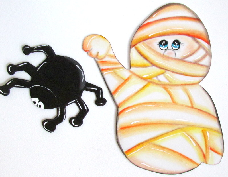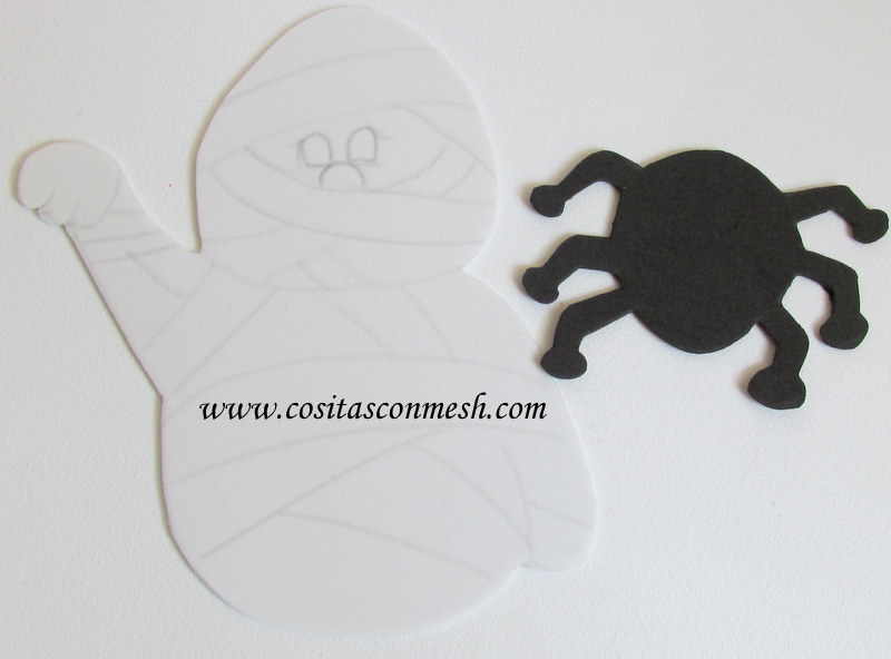 Pegamos las figuras de la momia y la araña-Ponlo donde mas te guste :).