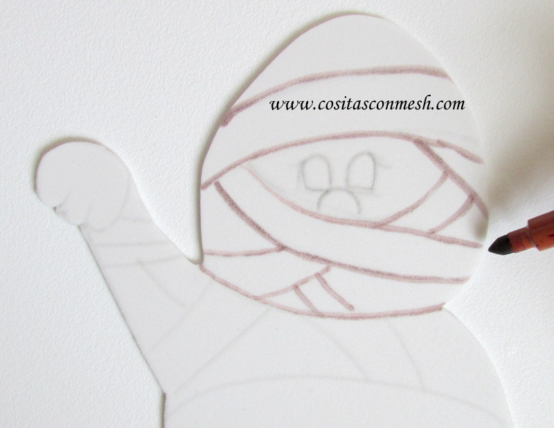 2.-Con un plumón marrón delineare todas las vendas de mi momia.