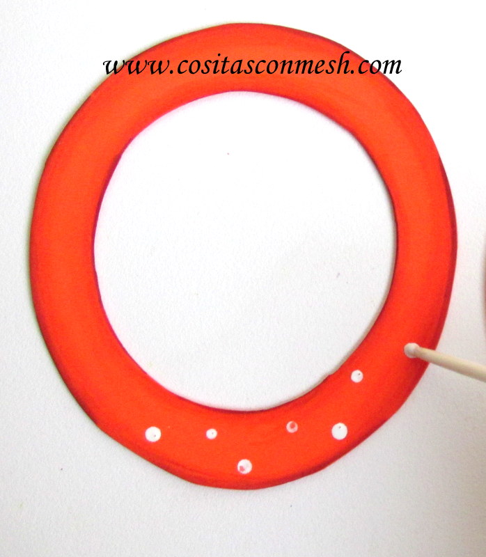 Para las letras del cartel con la letra "o", solo pintare unos puntitos de blanco, usa la parte trasera del pincel para ayudarte a hacer los puntitos.