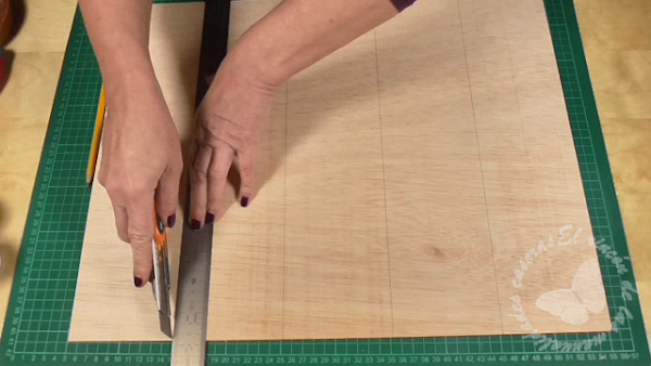 Lo primero será hacer que esa chapa de madera de contrachapado parezcan varios listones unidos para formar un tablero. Tras marcar los diferentes "listones" usaremos un cuter y luego un destornillador (preferiblemente de estrella) para marcar el tablero en lo que serían las juntas.