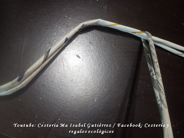 Terminamos de tejer en la misma varilla vertical donde empezamos, aquí solamente cortamos lo que nos sobró de la varilla con la que veníamos tejiendo y pegamos...
