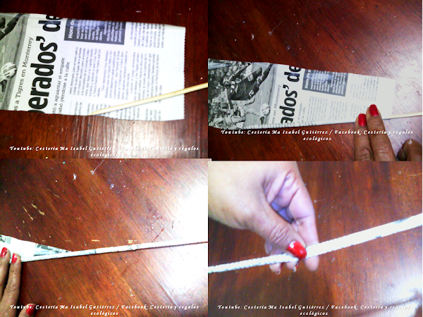 Antes ya te había compartido como hacer las varillas de papel, pero aquí te muestro nuevamente: Cortamos tiras de papel de aproximadamente 9 o 10 cms., de ancho (puede ser papel de diarios o de revistas), ponemos pegamento o cola blanca por toda la orilla del papel contraria a donde enrollamos, y con un palillo que puede ser de los que se usan en las brochetas, empezamos a enrollar la tira, empezando por la esquina inferior derecha, hecha la varilla, sacamos el palillo y con nuestros dedos, aplanamos estas varillas...