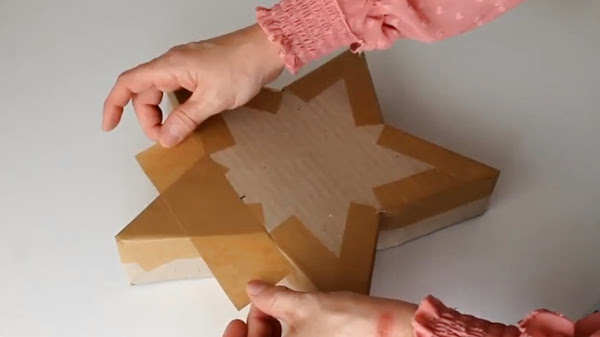 # Paso 1. Dibuja la estrella en la parte lisa del cartón ondulado y recórtala: