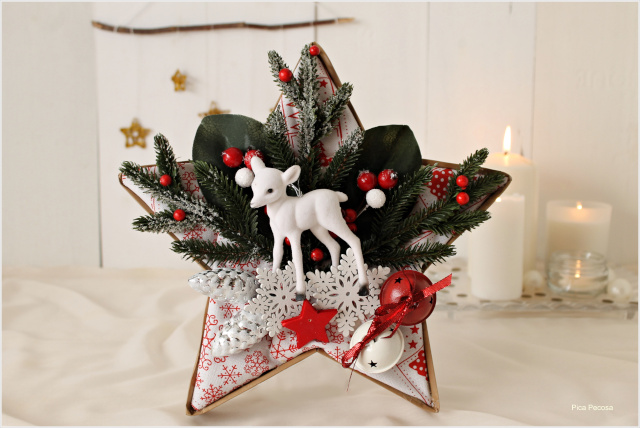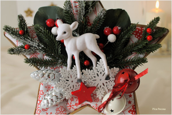 Mientras, te enseño los que hice con una caja de cereales y lana (aquí), la estrella de palos y un lazo (aquí), el portavelas con un bote reciclado y pintura (aquí) y la corona con ramas (aquí).