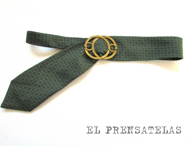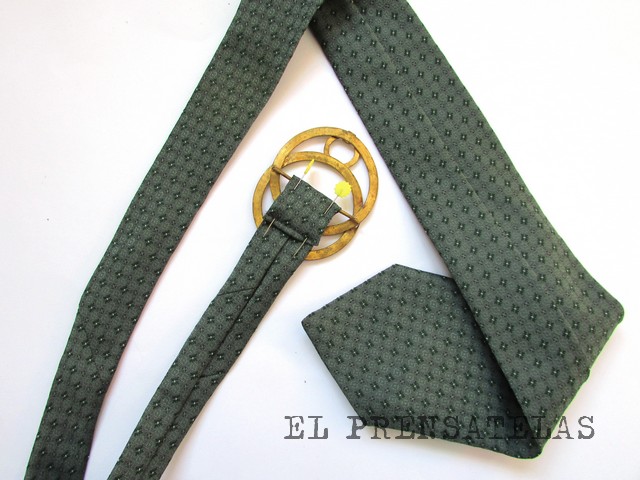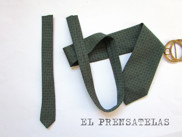 Para hacerlo únicamente corté unos 30 cm del extremo más estrecho de la corbata, para que no me quedará tan larga, pero lo mejor será que compruebes sobre tu cintura: