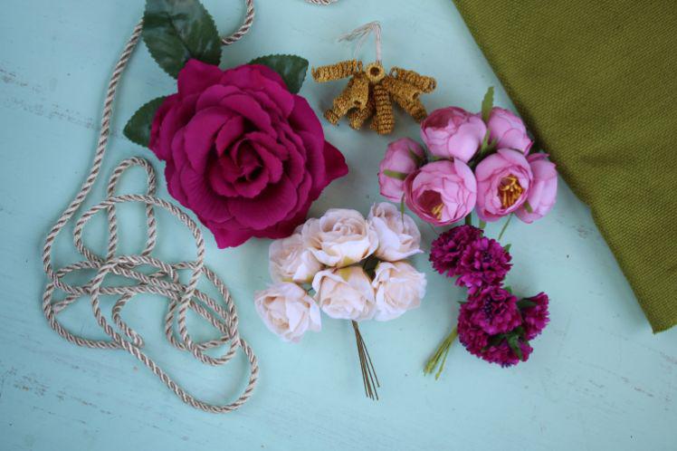 Una vez terminada la colocación de las flores, sólo nos queda coser el cordón que nos ayudará a crear finalmente el cinturón de flores.