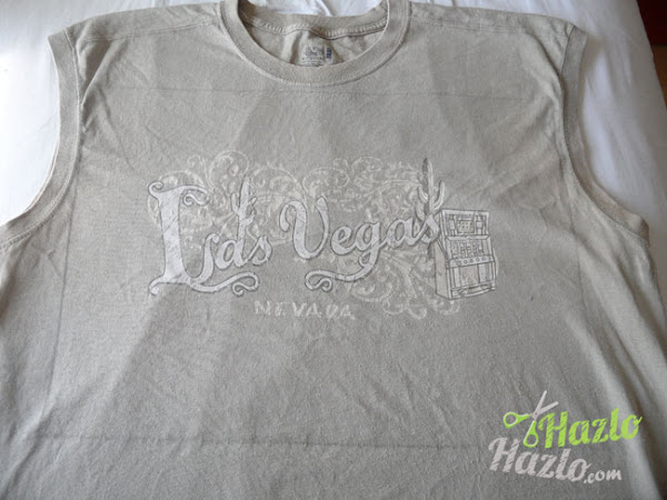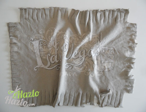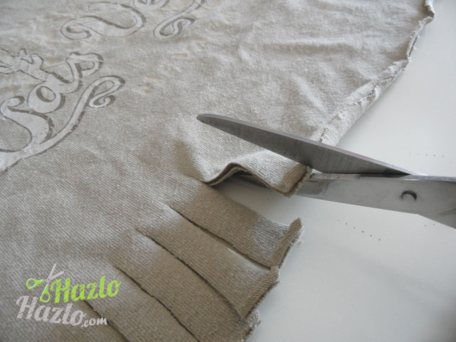 El siguiente paso es cortar unos flecos por todos los bordes de los recortes de camiseta.