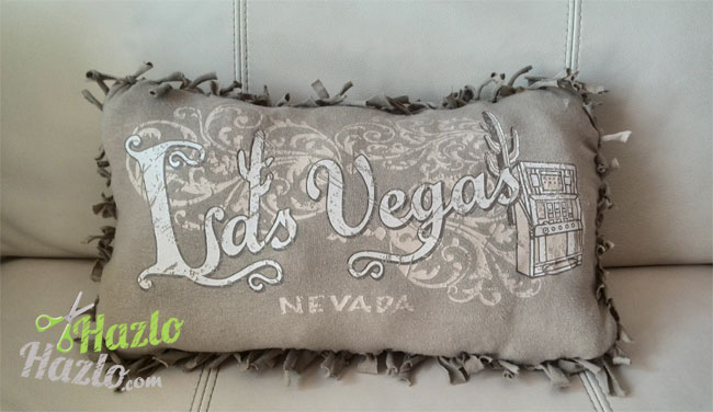 Si habéis elegido hacer una forma distinta para hacer vuestro cojín de camiseta, los flecos pueden quedar algo distintos, sobre todo si se trata de un cojín con curvas. Pero la base es la misma y solo se trata de adaptar los flecos por los bordes para hacer este cojín de camiseta.