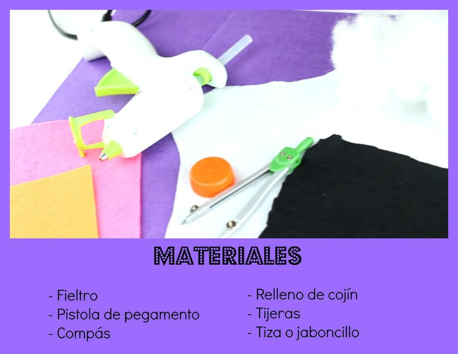 Además de fácil, este cojín de búho es muy económico. El fieltro es un material barato y necesitarás poco más para hacerlo: pistola de pegamento, compás, relleno de cojín, tijeras y tiza. ¿Ya tienes todos los materiales preparados?