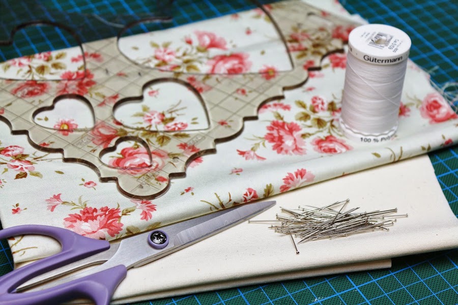 Alfileres, tijeras, una plantilla e hilo