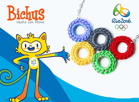 Para adherirnos a este evento, nada mejor que un colgante olímpico de crochet con el símbolo de los juegos.