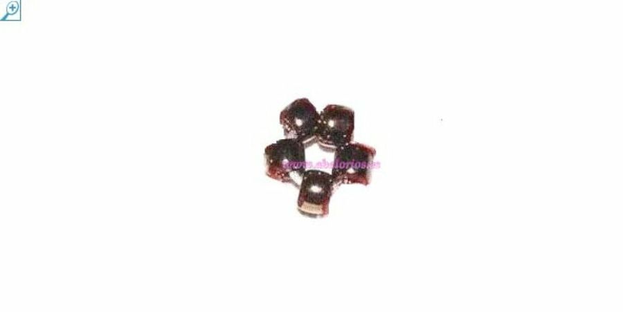 En el hilo de la izquierda seis rocallas y un tupi padparadscha, en el otro hilo enfilamos tupi padparadscha. Cruzamos los hilos en una rocalla y enfilamos cutro rocallas en uno de los hilos, volviendo a pasarlo por la de origen para hacer nuevamente el circulo de rocallas del que parten los pétalos de la flor.