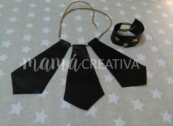 Tanto el collar como la pulsera lo podemos realizar simplemente con unas tijeras y un poco de pegamento o silicona.