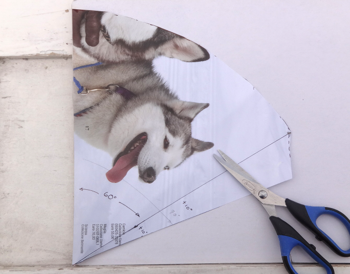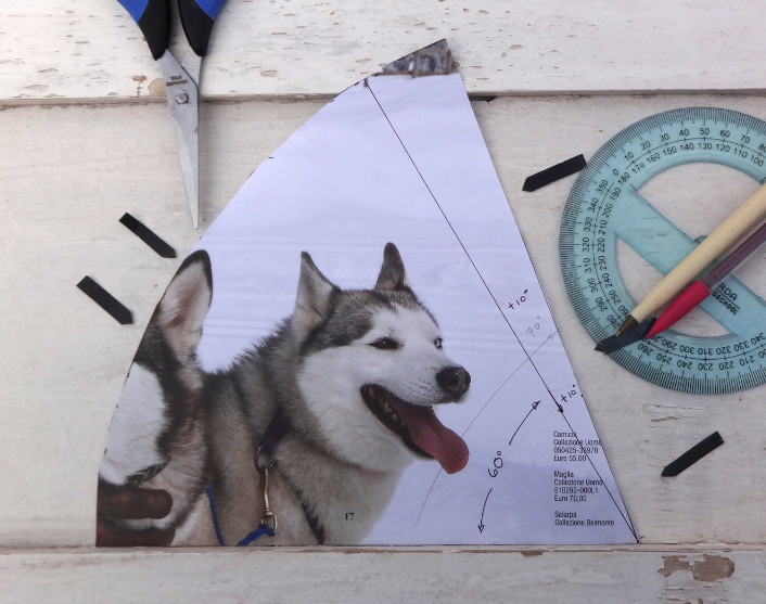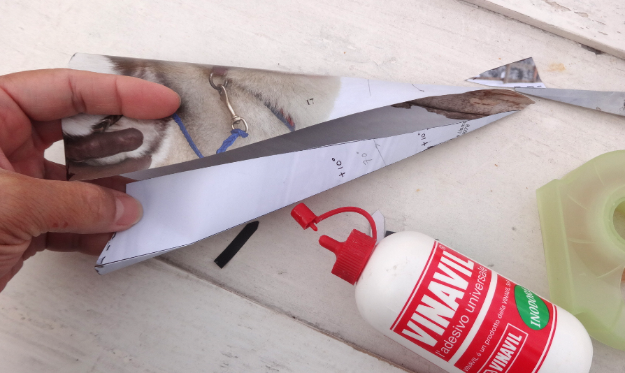 La segunda linea a 70 grados, sera la pestaña para unir el cono y poder aplicar el pegamento, por eso es importante extenderse hasta este espacio de papel.