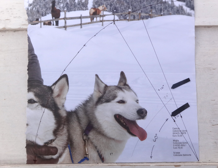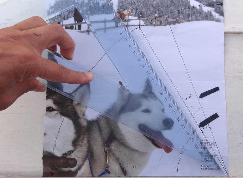 Y en el mismo ángulo que hemos usado de referencia, posiciono el transportador