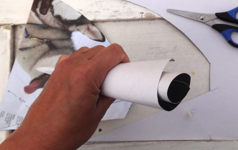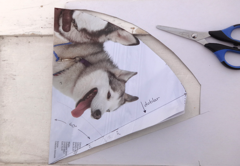 Marco con una pequeña linea punteada, la guía por donde cortare, esto para que al cerrar el cono, la pestaña no tenga un sobrante.