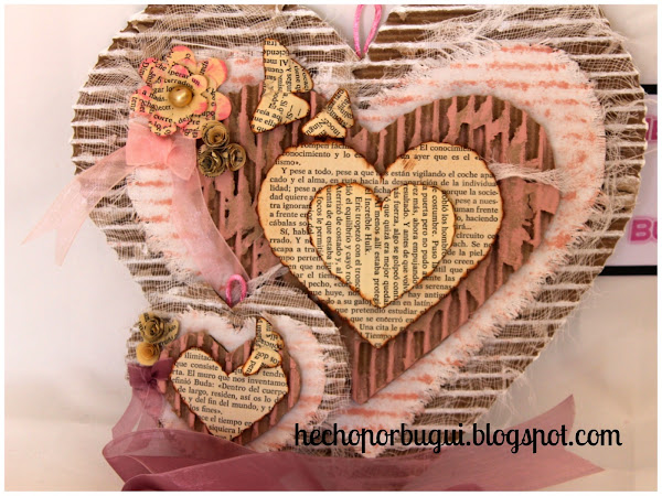 1.- Recorta dos corazones de carton y quita la primera capa de papel.