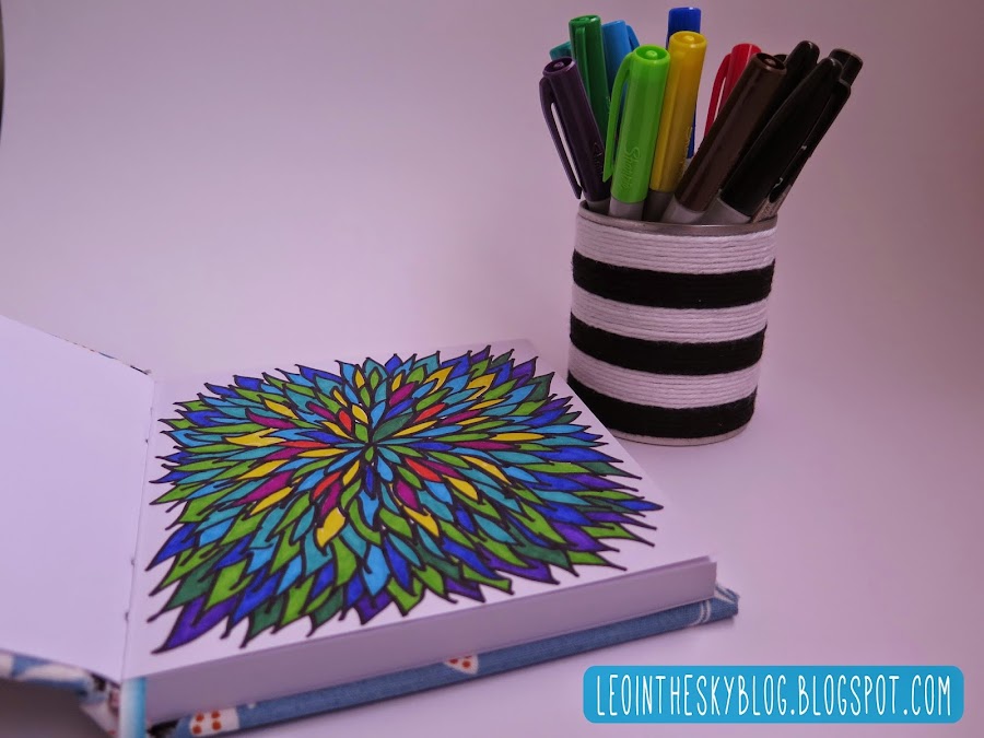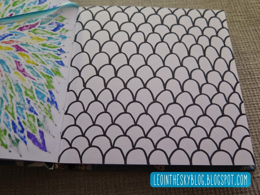 Tengo que decir que esto engancha, una vez que empiezas a hacer un dibujo no puedes parar hasta que terminas toda la página. Como mi cuaderno es pequeño, apenas mide 14x14cm no se tarda mucho en terminar cada dibujo y además se puede hacer incluso mientras ves la tele...¡es adictivo! ;D también me parece buena idea para llevar en viajes largos en tren o en avión, de esos en los que te da tiempo a hacer de todo, leer, ver una peli, escuchar música...y ¿por qué no? colorear tranquilamente en tu super cuaderno DIY ;P