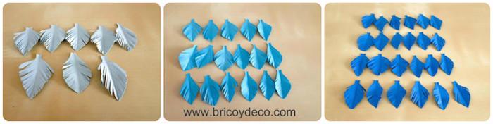 – Papel de diferentes colores, en mi caso un azul claro grisáceo, azul medio y azul profundo o azulón.