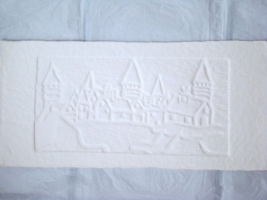 Por último, colocaremos el papel encima del marco y protegeremos nuestro grabado del polvo y suciedad. Para ello, necesitaremos un cristal que quede un poco holgado y que no aplaste el relieve que se ha creado en el papel.