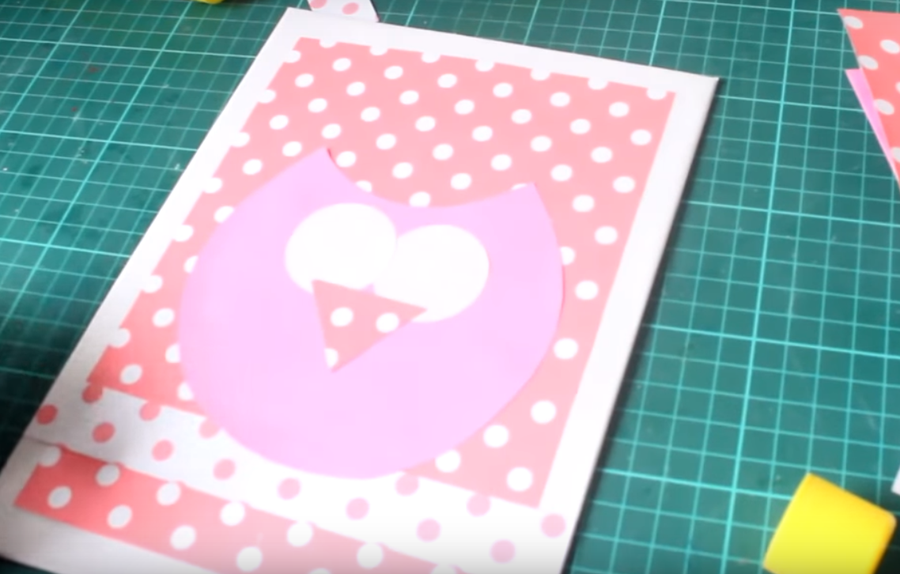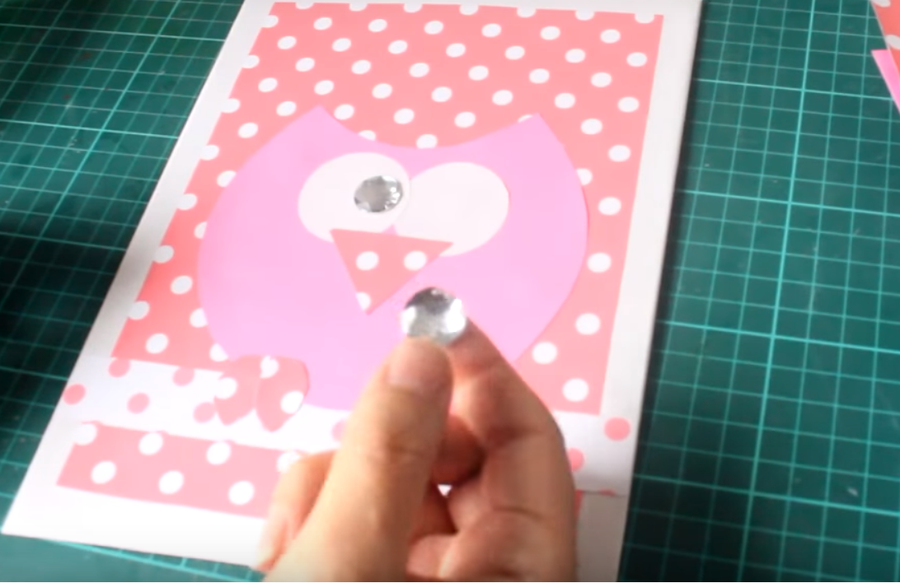 También pegamos un triángulo entre los dos ojitos a modo de pico.