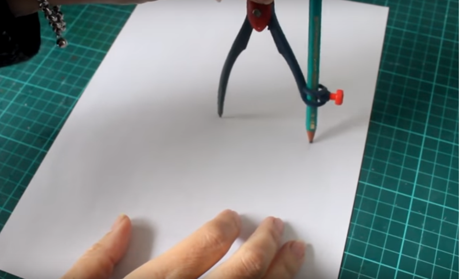 Lo primero que tenemos que hacer es un círculo del tamaño que queramos hacer nuestro buho. Puede hacerse con compás o con alguna tapa u objeto redondo.