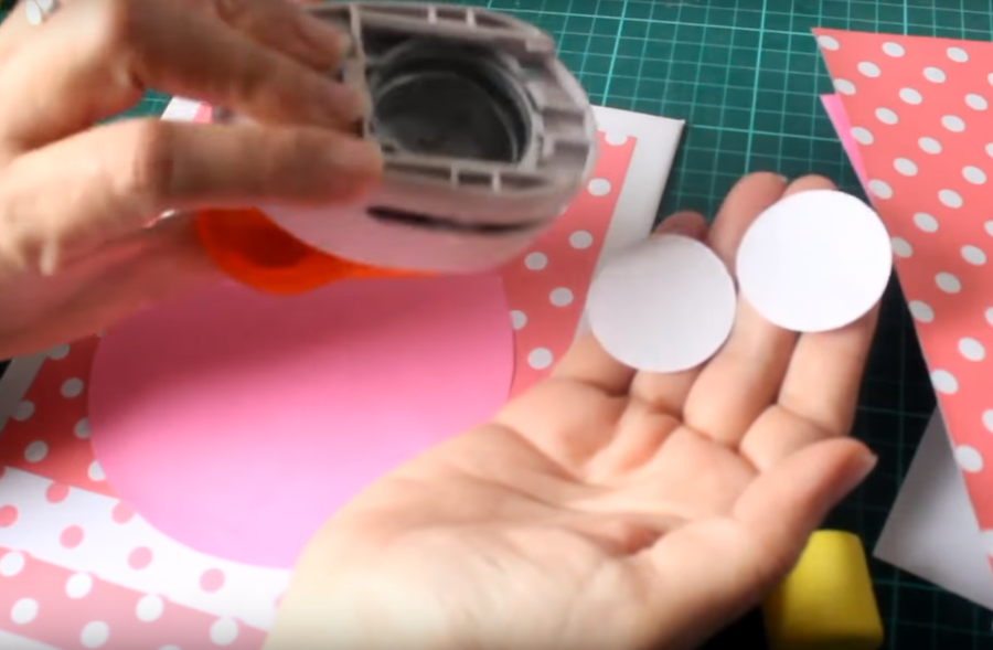 Para los ojos recortamos un par de círculos, en mi caso con una troqueladora, pero puede ser haciendo un par de círculos y recortándolos con tijera.
