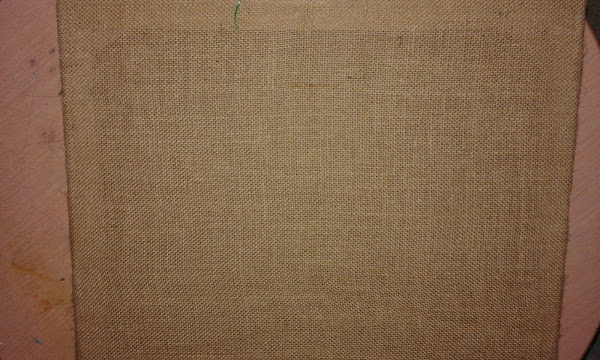 3.Colocar la tela de saco en el bastidor ayudándonos de unos clavos pequeños y un martillo.