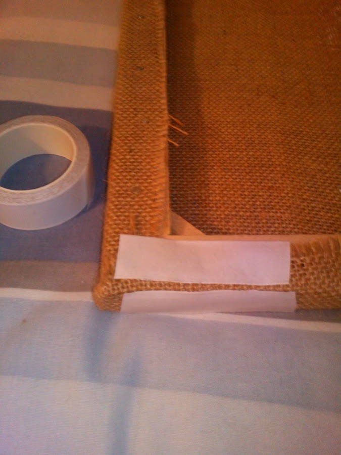 5.Colocar un trozo de cinta de doble cara en cada lado, para fijar la cinta de ganchillo.