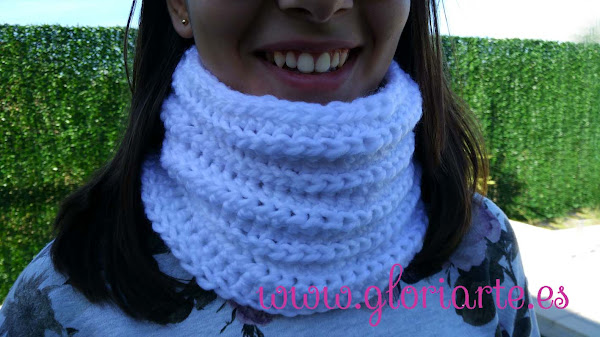 El mío es de color blanco y me estoy haciendo uno de color beige, a juego con los "crochet boot cuffs" ¿y tú? ¿eres de cuello, bufanda o pañuelo?