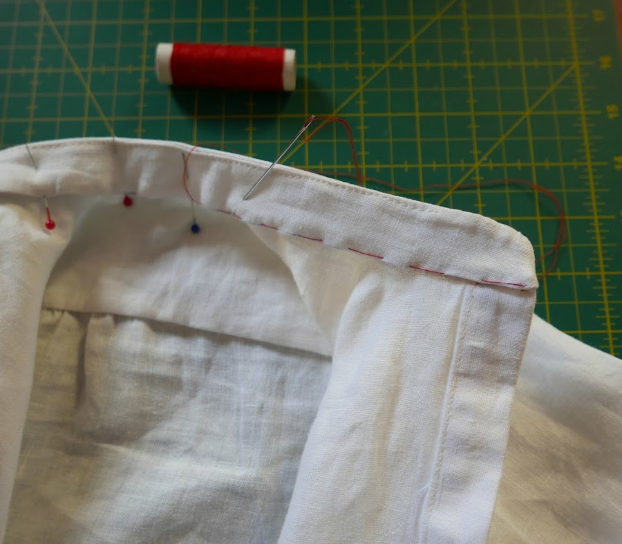 Vamos a empezar a unir el cuello con el resto de la camisa.