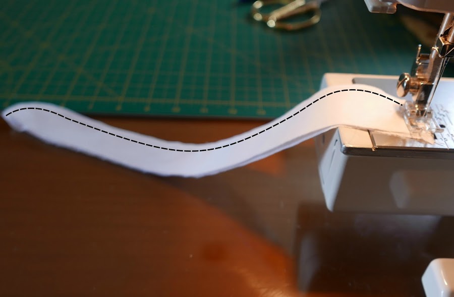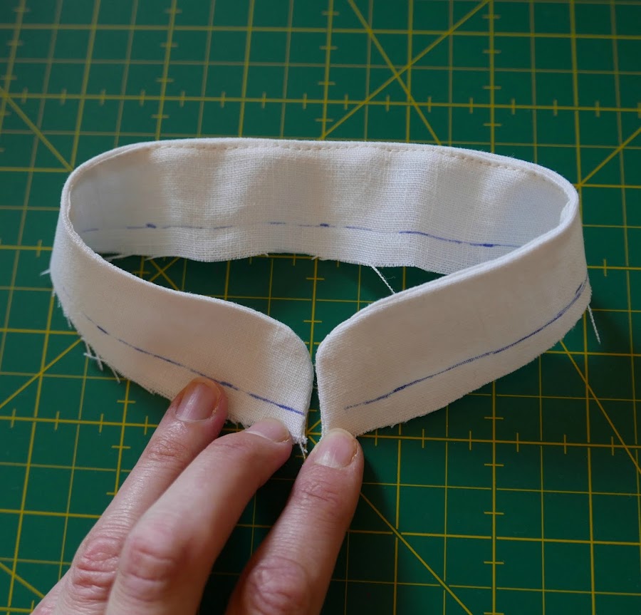 (*) La pestaña es un pespunte a canto que nos sirve para dar forma a la prenda. En este caso permitirá que la parte interior del cuello quede en su sitio.