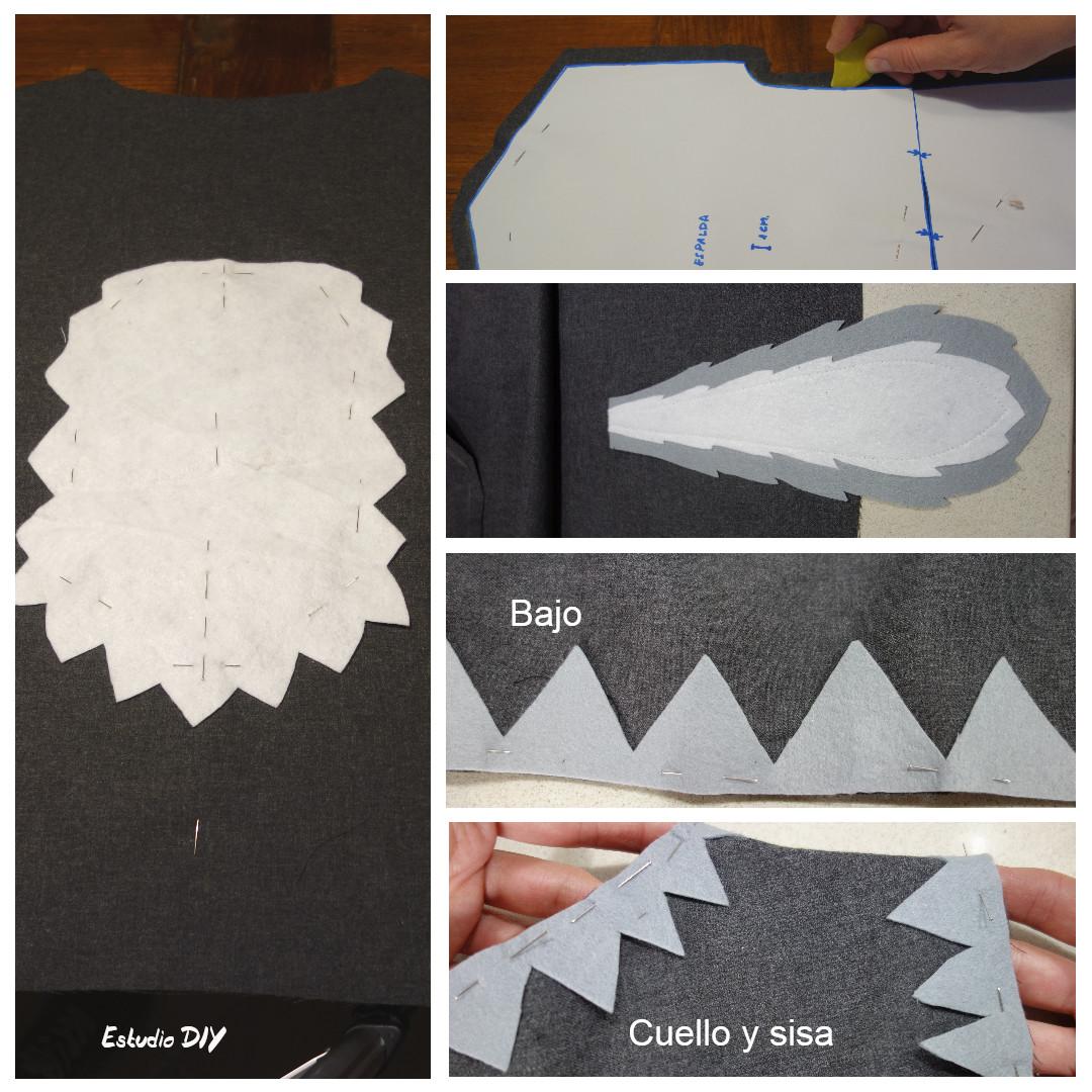 La sencillez en la realización de este disfraz radica en el tejido utilizado, el fieltro. Esta tela, además de ser muy económica, es fácil de manipular, se puede recortar, pegar, lavar y planchar. Yo lo he confeccionado, pero si no tenéis máquina de coser, podéis pegarlo con un pegamento específico para este tipo de material.