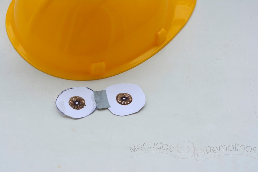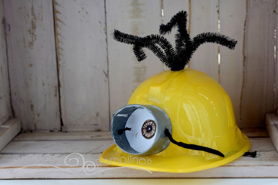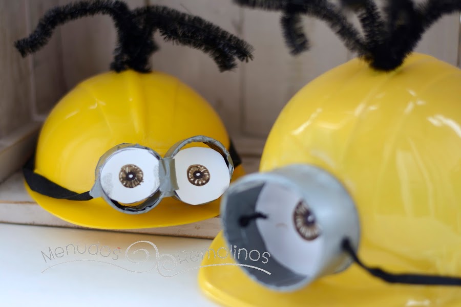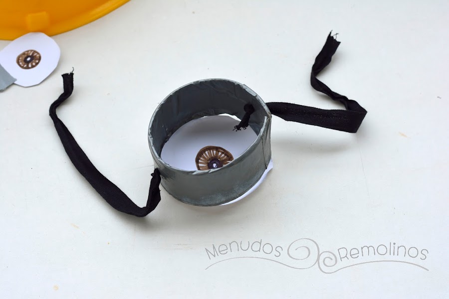 Por último, para terminar el gorro de Minion, pegamos las gafas a los cascos, y ya tenemos lista la primera parte de nuestro disfraz