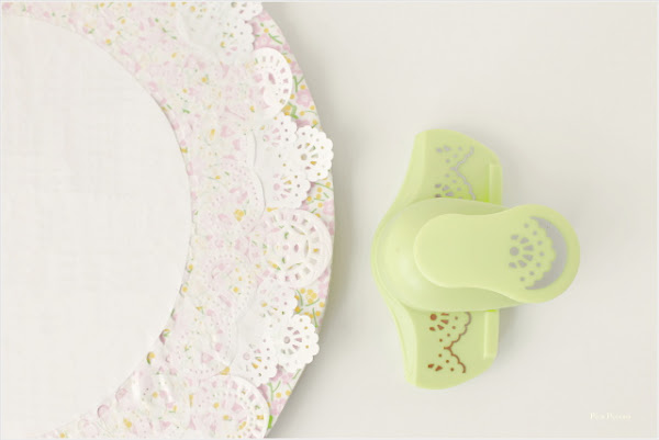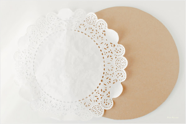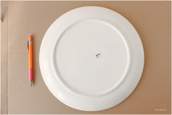 # Paso 1: Toma la medida de la blonda y recorta el cartón en función de su tamaño. Para que te salga un círculo perfecto utiliza un plato, una ensaladera o algo similar: