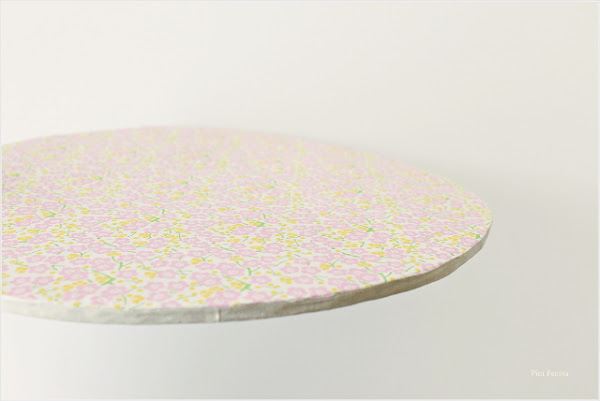 # Paso 3: Recorta un círculo pequeño en el cartón para hacer el platillo de la taza, y fórralo por ambos lados también con el papel.