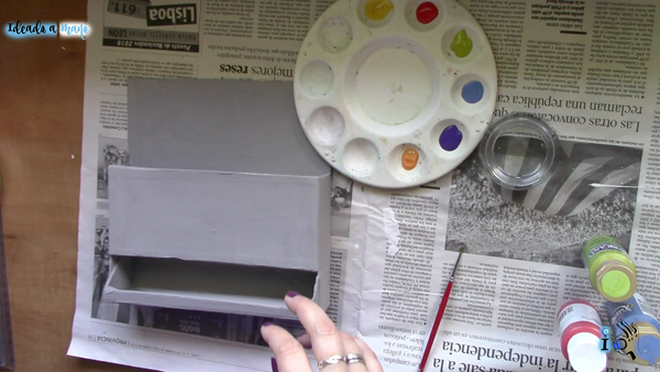 Después pinto la caja. Primero una capa de blanco a modo de imprimación y luego en gris, porque la cocina dónde va a ir es gris y blanca.