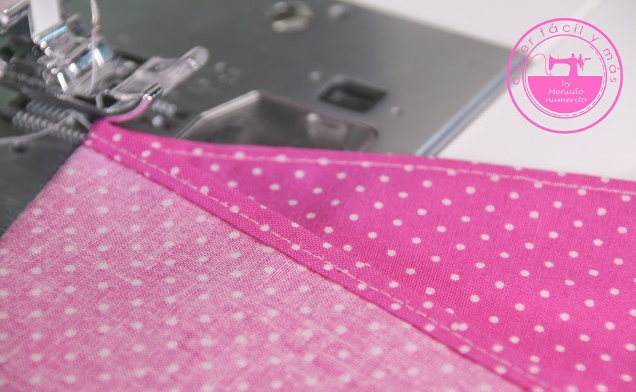 Para empezar cosemos un pespunte recto a 1 cm del borde, por el revés de la tela