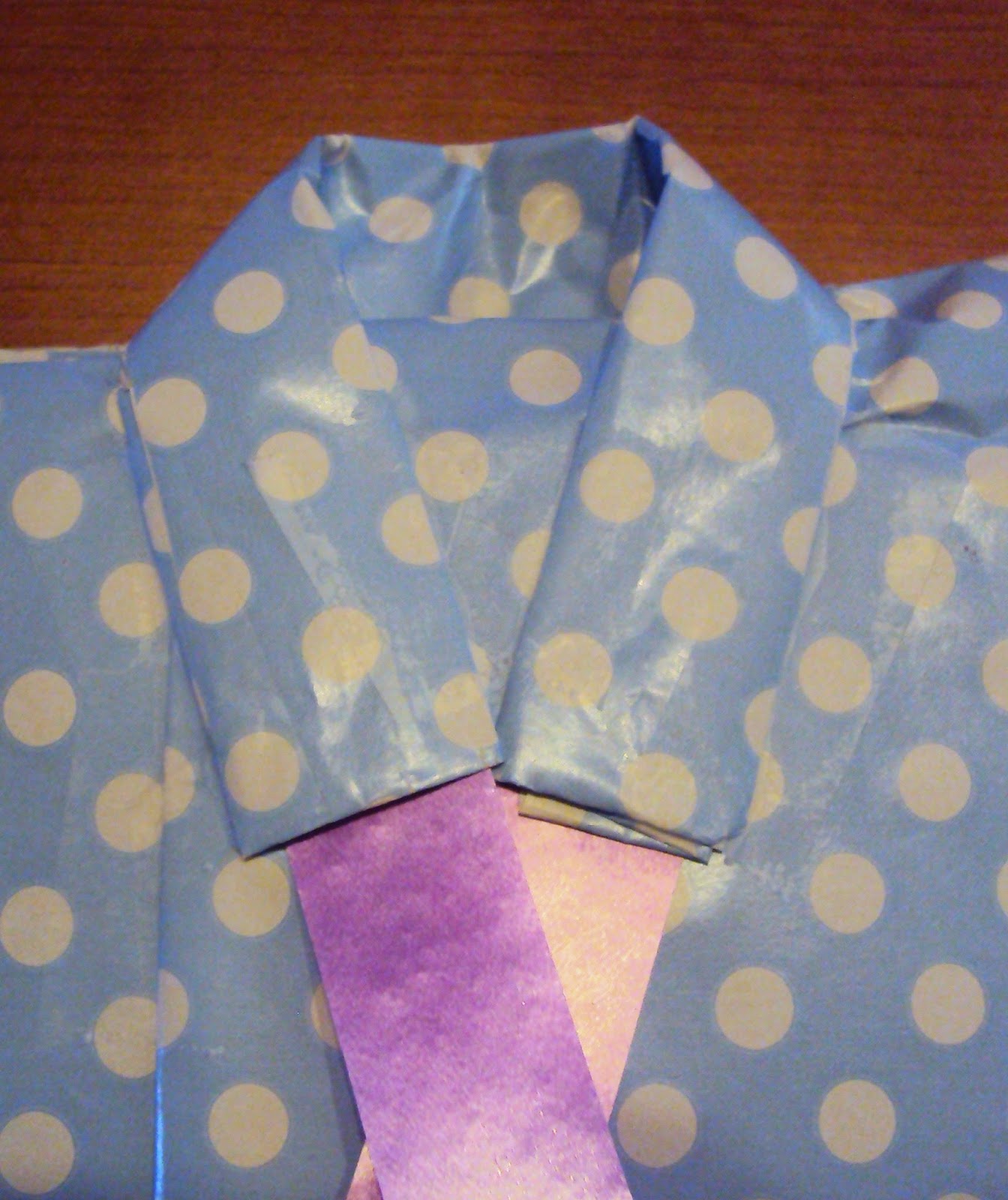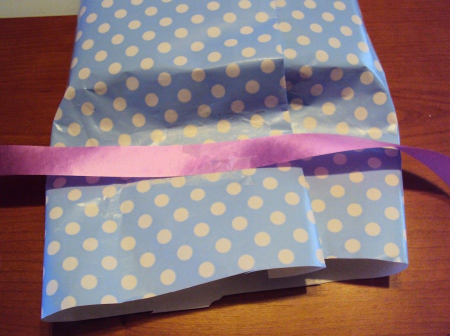 2º Empezaríamos a envolver como si fuese un regalo normal (en uno de los extremos hay que dejar un trozo de papel mas largo).