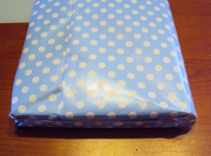 3º Por el lado donde el papel es mas corto cerramos el paquete como siempre hacemos. Doblando las esquinas y dejándolo bien plano.
