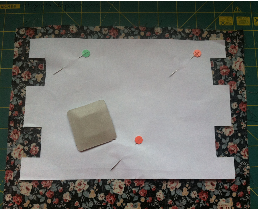 La plantilla la situaremos encima de cada revés de tela, dibujaremos la forma con nuestro jaboncillo y con la ayuda de un cutter o tijeras, cortaremos nuestra plantilla.