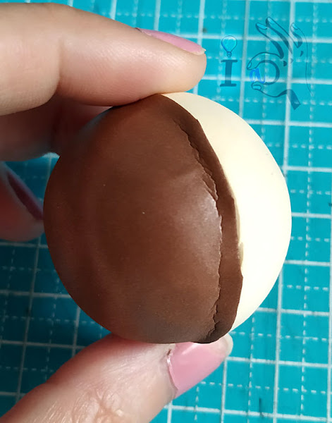 Yo siempre los comienzo por la cabeza, forrando una bola de porex, en este caso del 3, mitad de color carne y mitad marrón porque nuestro pirata va a ser castaño. Para ello cogeremos dos cuadrados de gomaeva (uno de cada color) los calentaremos con la plancha y los estiraremos alrededor de la bola para que cojan su forma, recortándolos y pegándolos después.