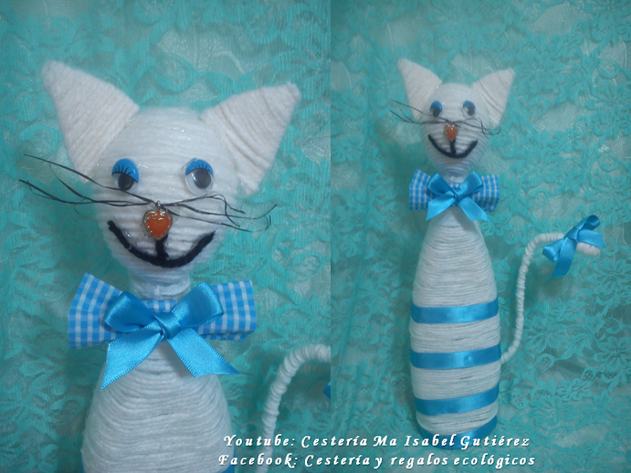 Para decorar, pegamos un pequeño lazo en el cuello y otro en la punta de la cola; también, listones alrededor de la parte baja del envase.... y listo ! sencillo y rápido verdad? pero vean que lindo quedó!