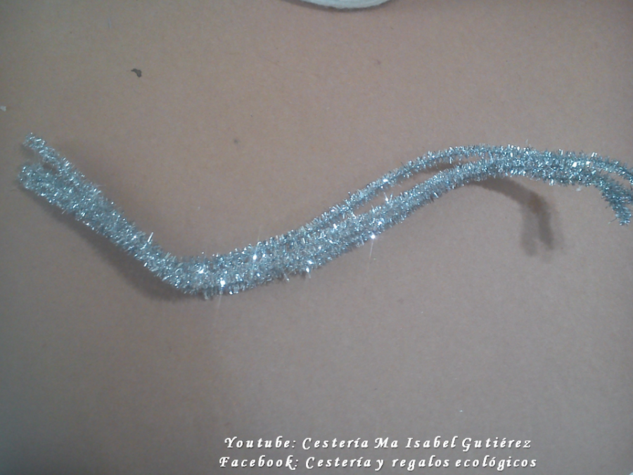 Aparte, tomamos cuatro limpia-pipas (se puede sustituir por alambre flexible) le damos forma de "S" y forramos con estambre...