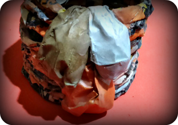 Le he dado una capa de " cartapesta " a los sacos de arena , y al resto del cesto una de cola blanca.