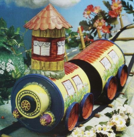 Amigos la manualidad que hoy quiero compartirles la encontré hace poco en una de mis revistas viejitas, no se lo pueden perder ya que es uno de los mejores juguetes para niños hecho con latas que te puedas imaginar, así es amigos, a reciclar las latas de leche de los niños, y las tapas que tenemos en casita, ya que con estos materiales podemos hacer este hermoso trenecito chu chu.