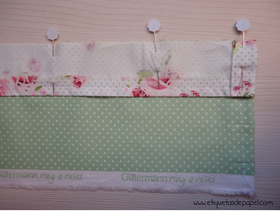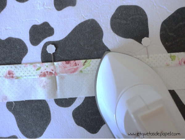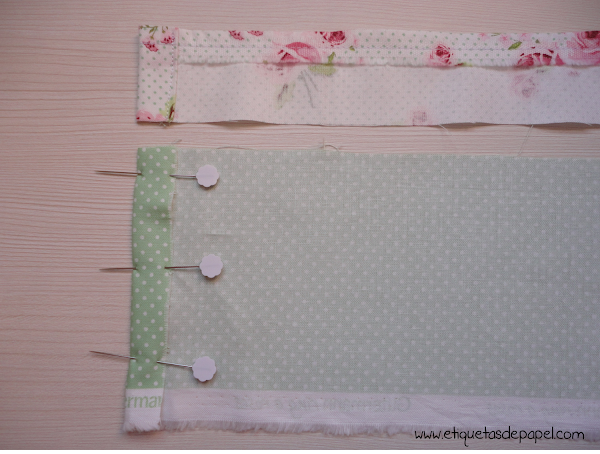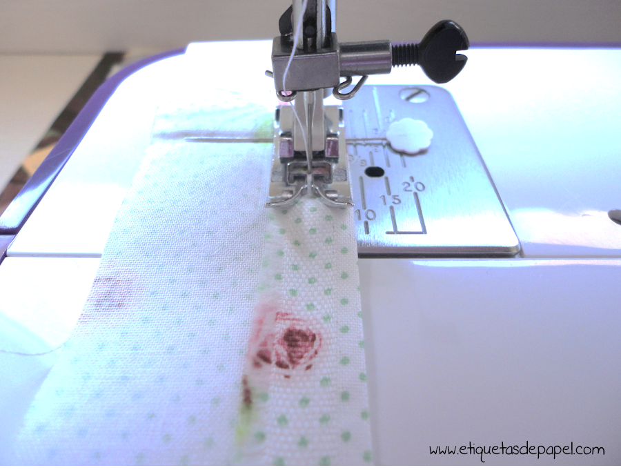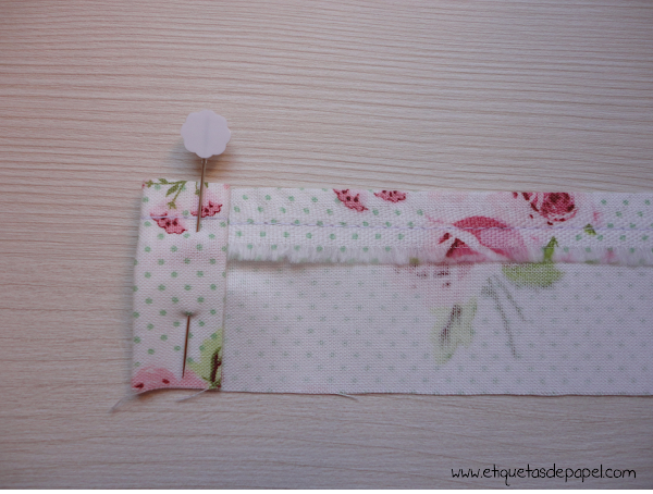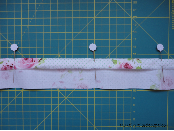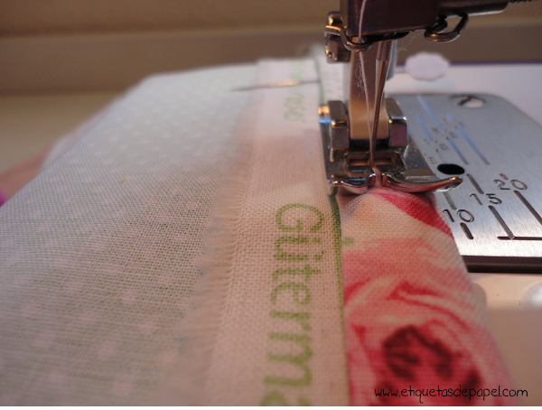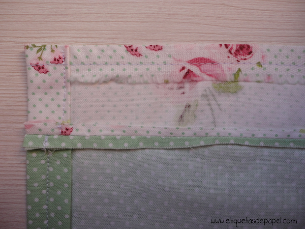 Iremos haciendo pequeños dobladillos en el borde de la tela superior y la inferior que irá en la lata.