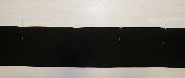 Ten en cuenta que, en este caso, el tejido que estoy utilizando se mueve con cierta facilidad, por lo que procuro poner los alfileres necesarios