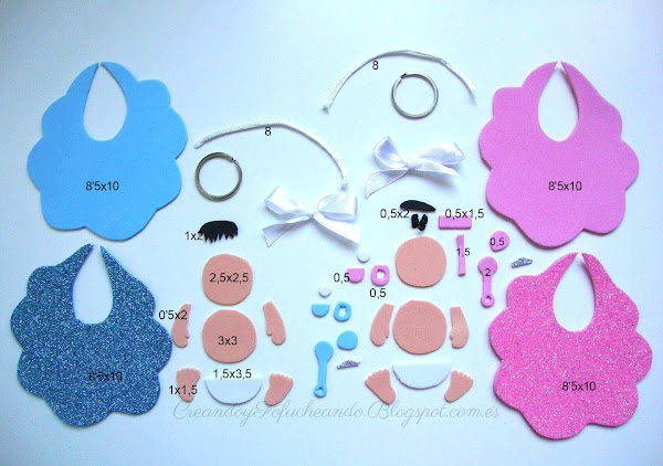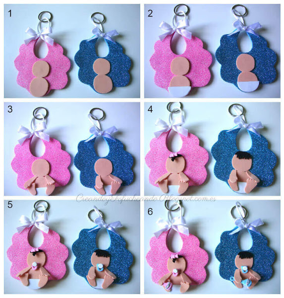 Un Tutorial para hacer unos llaveros de goma eva con forma de baberos,tanto para niño,como para niña.